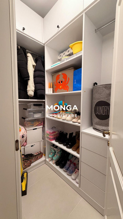 Accesul se face intr-un hol ce comunica cu o zona de dressing/ depozitare, o baie si holul principal de distributie. De aici se acceseaza un dormitor, living-ul spatios, bucataria inchisa si dormitorul matrimonial cu baie proprie.