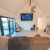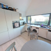 Accesul se face catre un living spatios, foarte inalt cu bucatarie deschisa. Din living se ajunge printr-un hol catre zona de dormit. Aici avem un dromitor matrimonial cu dressing si baie, inca un dormitor si o baie.