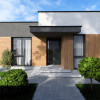 Accesul se face intr-un hol care comunica cu doua dormitoare o baie si camera tehnica, si se termina intr-o zona de living spatios si bucatarie cu o suprafata deschisa totala de 43mp. Din aceasta zona se acceseaza dormitorul matrimonial cu dressing si baie proprie. Terasa si curtea pot fi accesate tot din aceasta zona.