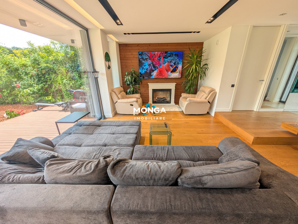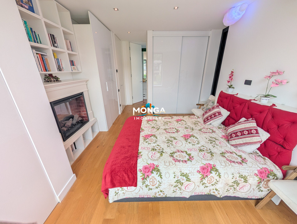 Casa de vinde completa finisata si mobilata premium cu mobilier de foarte buna calitate (i.e., televizor Sony de 216cm, cuptor electric plus microunde 2 in 1). Este localizata intr-un compex privat exclusivist cu facilitati premium precum teren de tenis sau de baschet propriu.