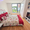La etaj avem un dormitor matrimonial cu dressing si baie proprie cu sauna (baia inlocuiestele spatiul numit Storage in schita atasata si are acces din dormitor) un al doilea dormitor si inca o baie.