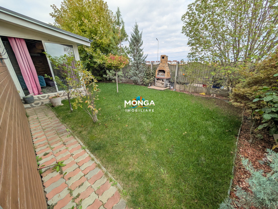In curte avem parcare, zona verde cu vegetatie matrua si bine intretinuta si o magazie cu rol de depozitare in zona de spate. Se poate parca in curte sau pe drumul de acces in fata casei.