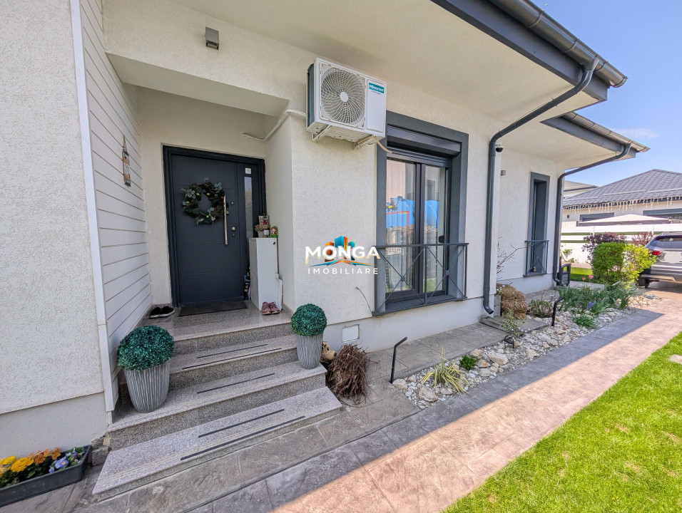 Va oferim spre achizitie fara comision o casa individuala pe parter, superba, cu finisaje si dotari de calitate, complet mobilata si utilata. Casa are 4 camere plus pod, 109 mp si beneficiaza de un teren de 411mp