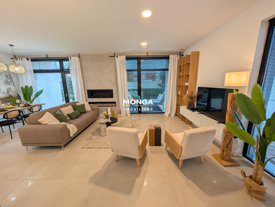 Casa se vinde mobilata si utilata interior premium ca in poze. Sunt surprinzatoare atat design-ul deosebit cat si calitatea materialelor si obiectelor de mobilier.