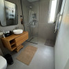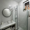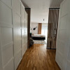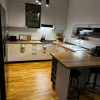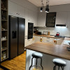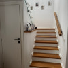 Accesul se face printr-un hol ce comunica cu camera tehnica, o baie si biroul. Holul continua apoi catre scari si o zona de living dining spatioasa ce se contine cu bucataria so ofera si acces spre terasa de 26mp si curte. Bucataria este separabila cu usi glisante.