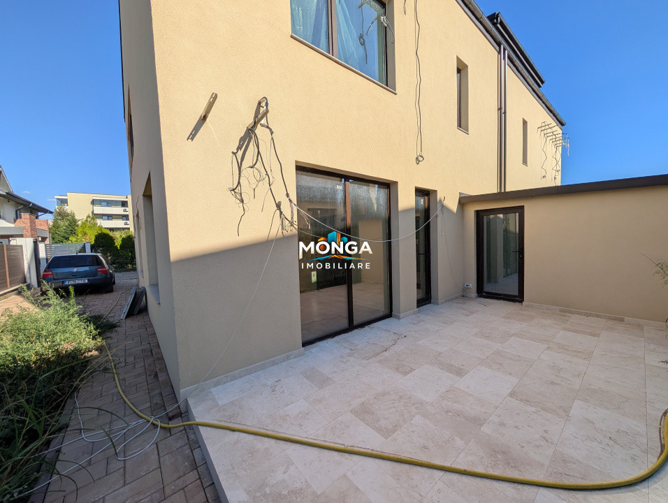 Cealalta jumatate din duplex, este putin diferita, cu o suprafata utila mai mica, dar un teren de 510 mp si este disponibila la 389 000 EUR.