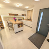 La parter, accesul se face intr-un hol ce comunica cu o baie, bucataria deschisa si zona de living-dining foarte spatioasa. De aici avem accesul catre terasa si curte, dar si scarile catre etaj.