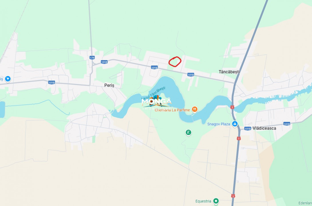 Terenul este situat in Tancabesti, intravilan, in directia Peris, cu acces din DJ 101B si strada Popa Angela, zona in care exista curent electric si gaze naturale. Terenul detine certificat de urbanism emis in 2024 pentru locuinte P+2, POT maxim 40% si CUT maxim 1,2.